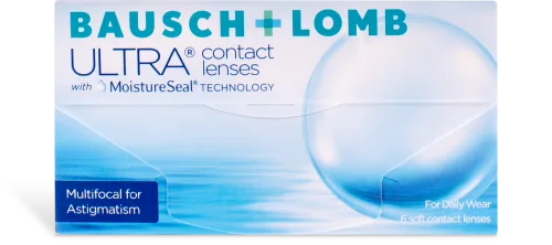 Bausch + Lomb ULTRA Multifocal for Astigmatism contact lenses feature three great technologies in one lens. They provide clear vision at all distances for wearers with presbyopia thanks to their 3-Zone Progressive design, while also correcting astigmatism with OpticAlign. In addition to delivering clear and consistent vision, ULTRA Multifocal for Astigmatism contacts lock in moisture for a full 16 hours with MoistureSeal technology.